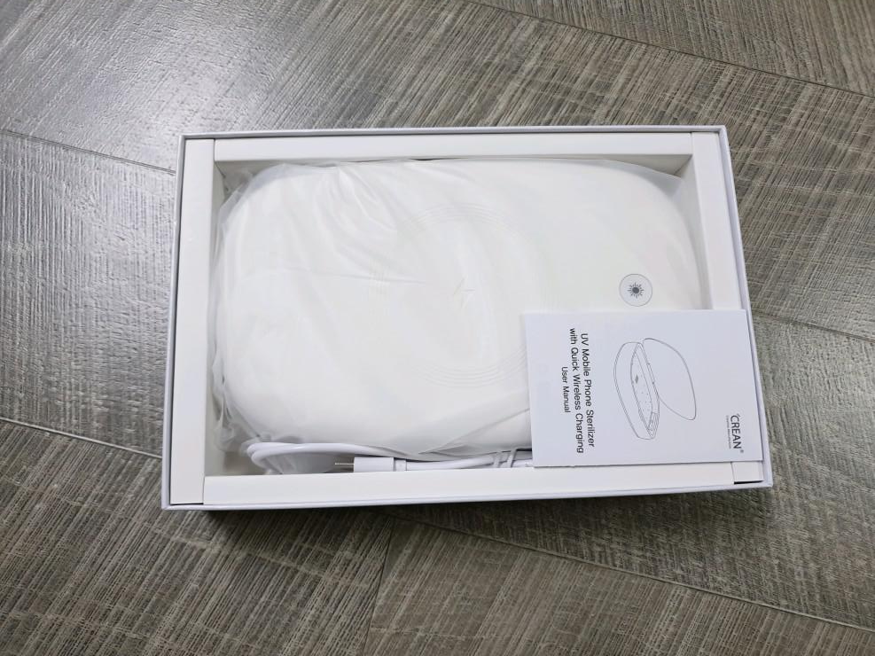 비닐포장이 되어있는 크레앙 UV 고속 무선 충전 살균기
