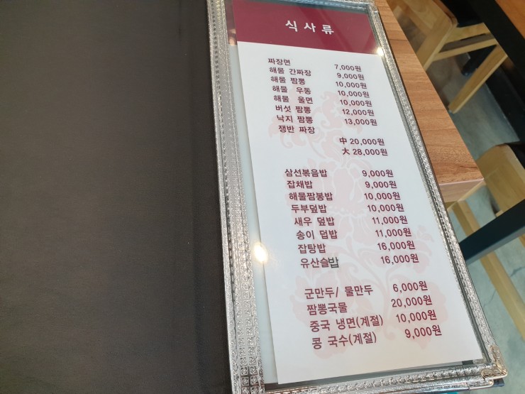 많이 드시는 짬뽕, 짜장면, 탕수육의 가격은 저렴하지않은것 같네요.