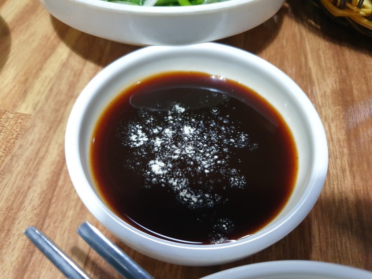 장어를 찍어먹는 소스를 주시는데 홍삼가루를 양껏뿌려줍니다.