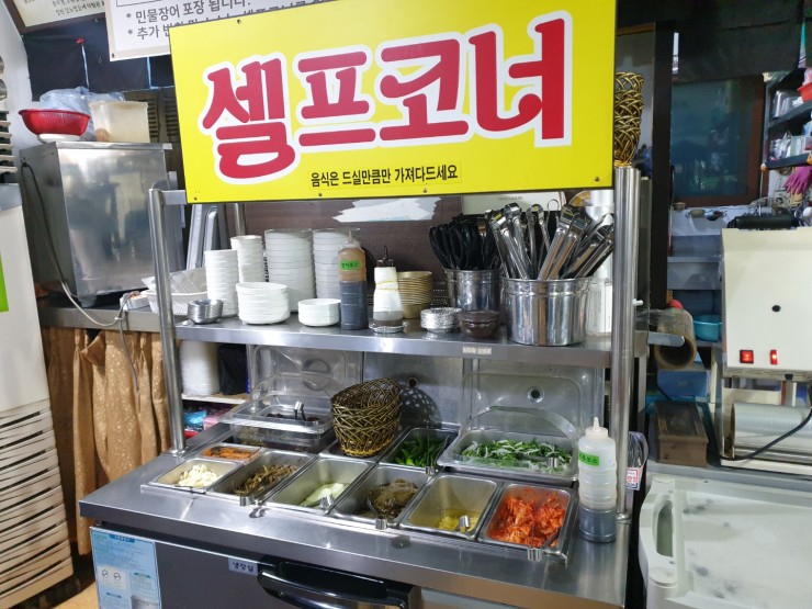 셀프바를 운영중이라 반찬을 다 드셨다면 가져다 드시면됩니다.