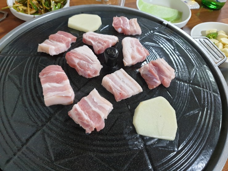 솥뚜껑에 구워먹는 관악감자탕 삼겹살입니다ㅋ