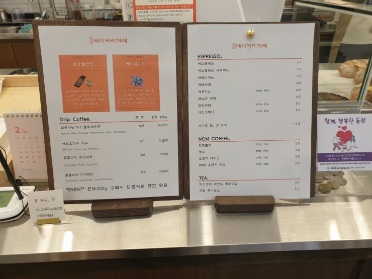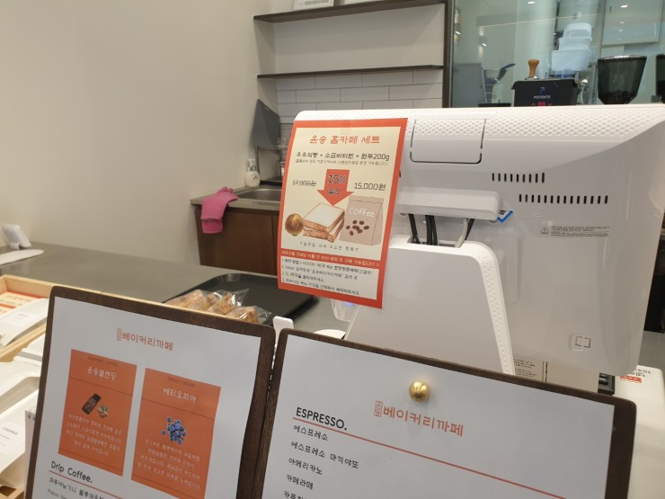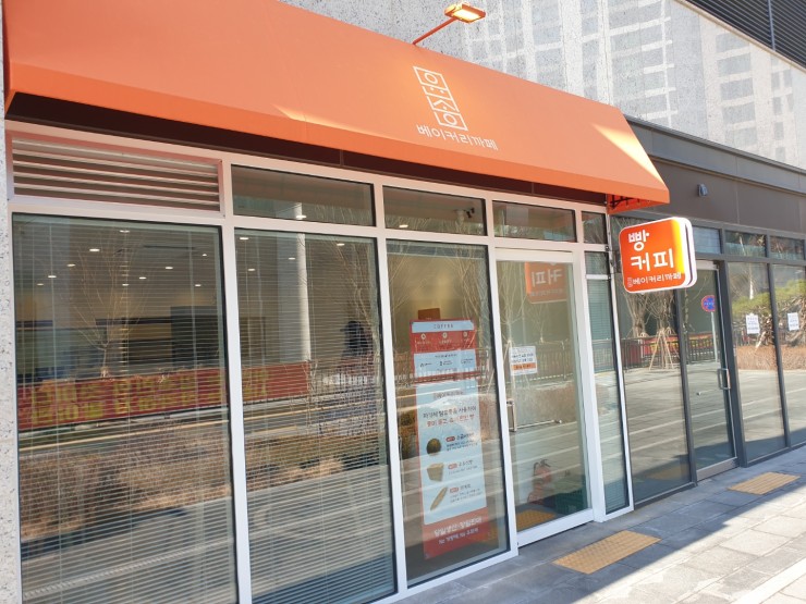 새로생긴 빵집이라 깨끗하고 시그니처 칼라가 오렌지인가봅니다.