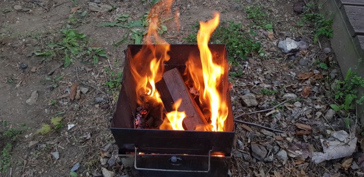 전문캠퍼용 미니장작을 태워봤는데 역시나 연기가 잘 나지않습니다.