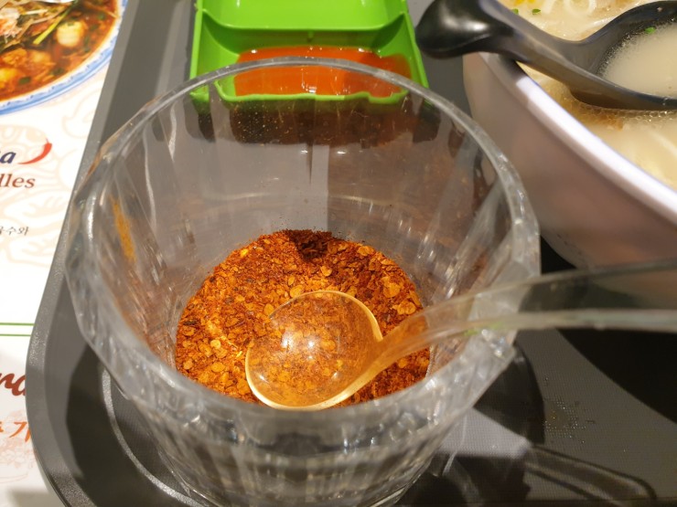 고추가루를 넣어 먹으면 더 맛있다고 해서 약간 넣어 먹어보았습니다.