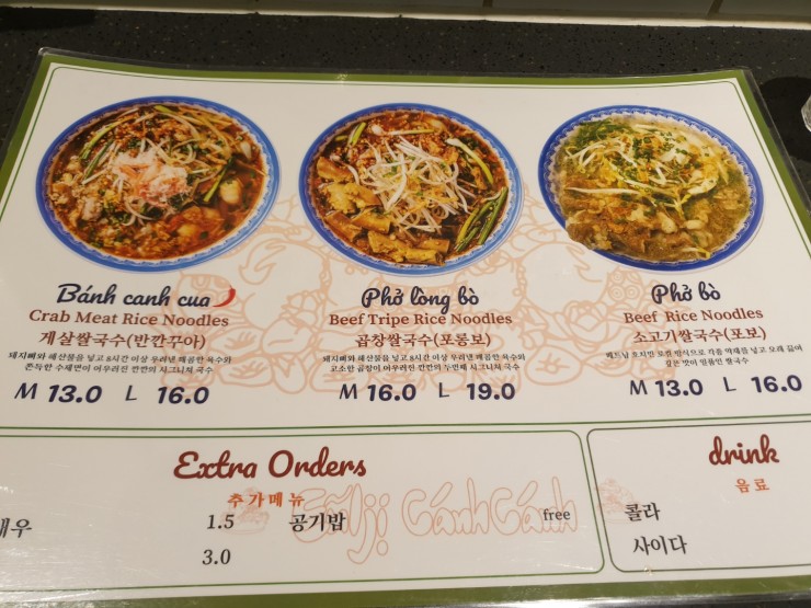 저희는 게살쌀국수 하나, 소고기쌀국수 하나 주문을 했고 밥이 필요하시다면 무료이니
