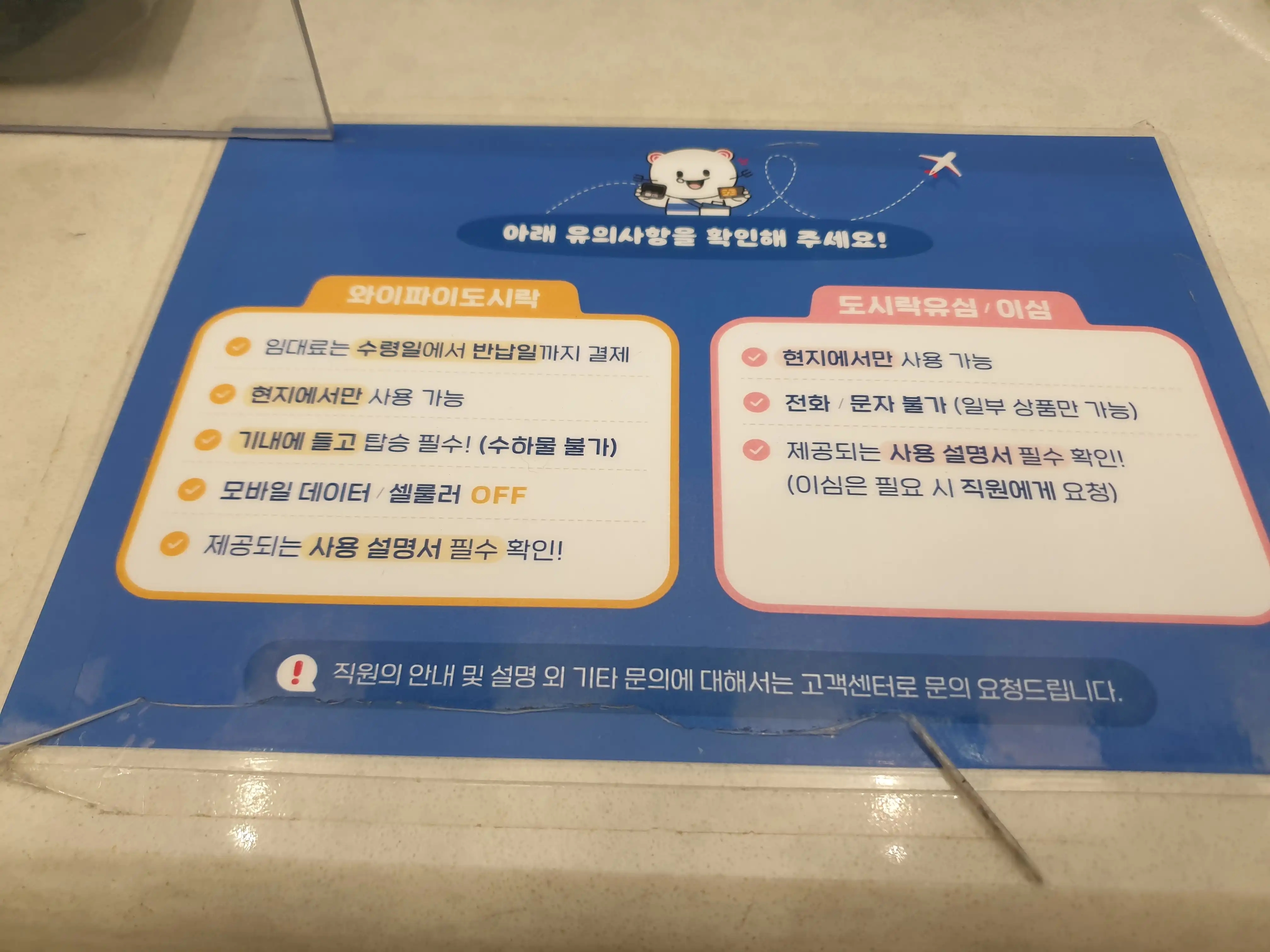 아침 7시 비행기, 와이파이 도시락 수령가능할까?