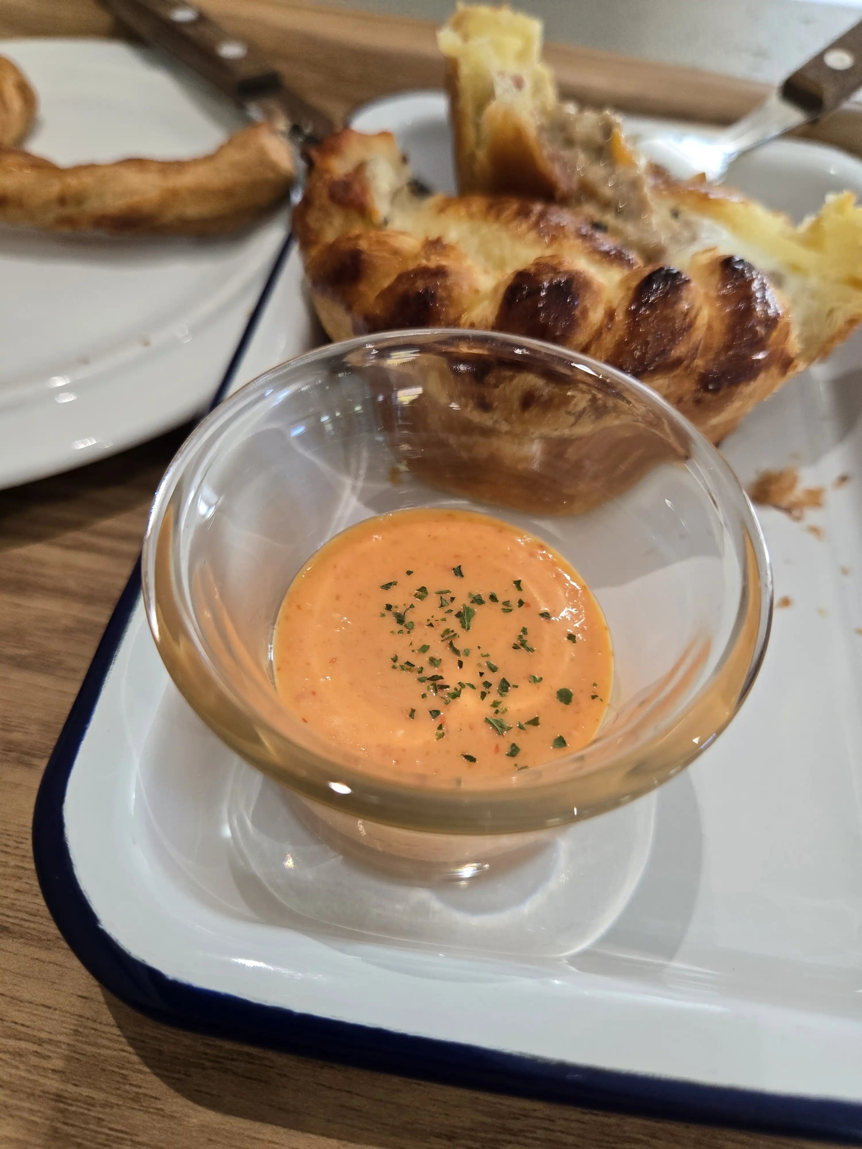 의외로 매콤한 소스라 파이를 찍어먹으니 정말 잘 어울렸습니다.