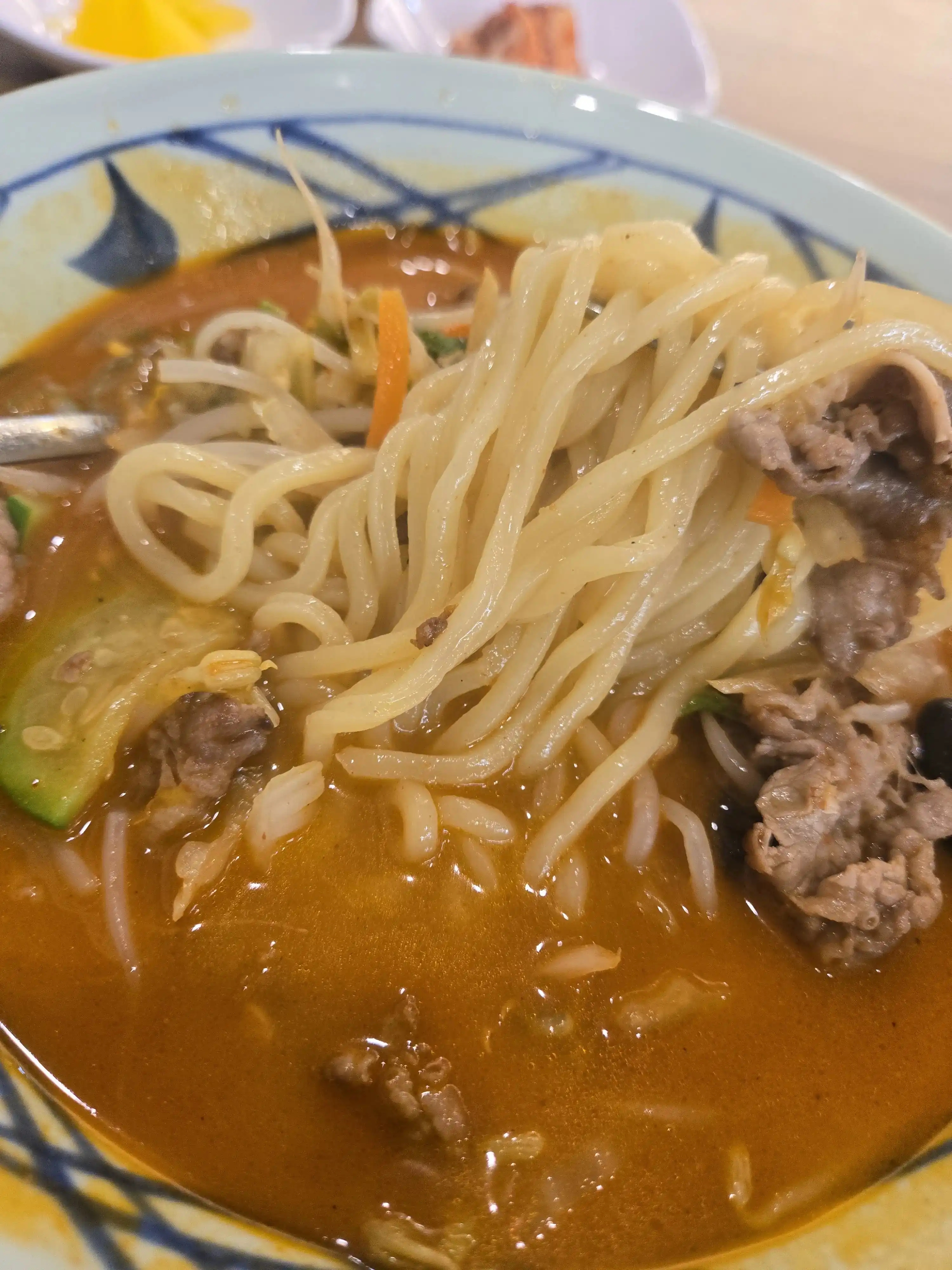 면은 국물이 배어있지는 않아 면이랑 국물이랑 같이 먹으면 맛있었다.