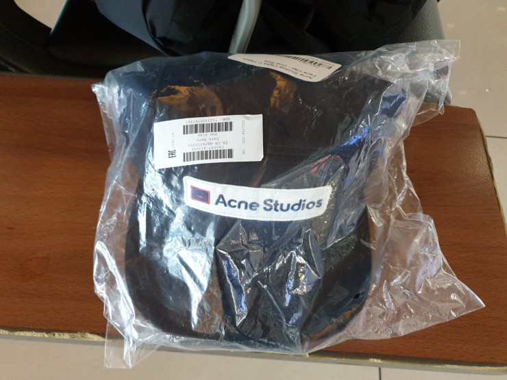 비닐에 이쁘게 포장되어있는 아크네스튜디오 모자.